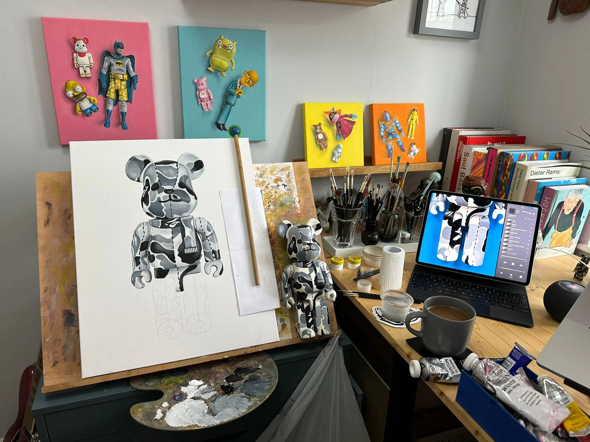 Although working as a graphic designer in the industry for over 24 years, Daniel has always been a keen artist, and kept his brush in oil paints and on the canvas. Recently he has developed a unique style painting colourful toys and figures, which is starting to get recognition among the local community and more recently further afield.